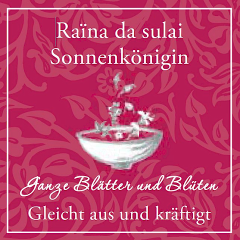 Zutaten: Rosenblüten, Verveine, Holunderblüten, Malvenblüten, wilder Majoran, Goldmelissenblüten (aus Wildernte/Anbau)